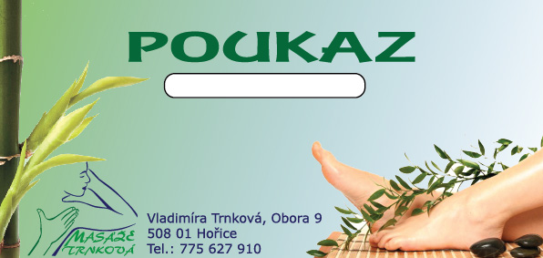Chcete svým blízkým koupit originální dárek? Věnujte jim dárkový poukaz na masáže. Dárkovým nebo peněžním poukazem uděláte radost své rodině, přátelům i kolegům.